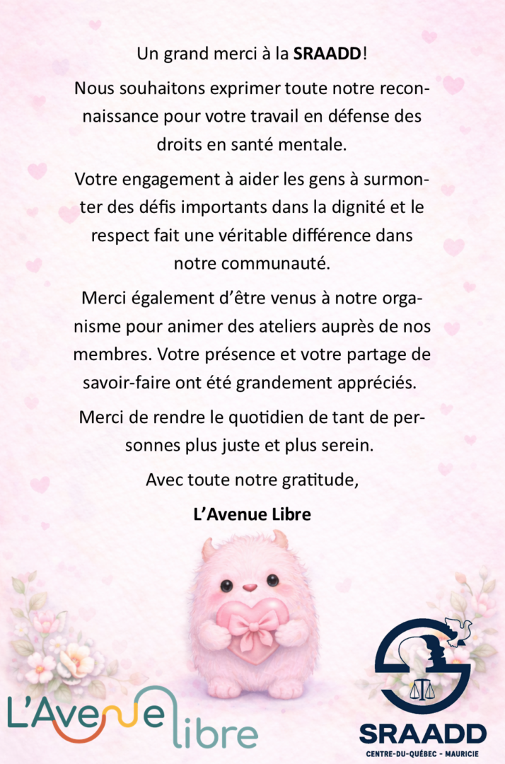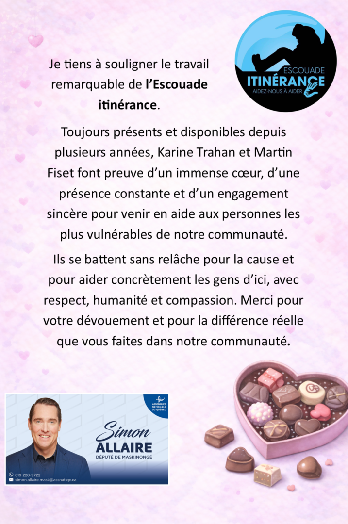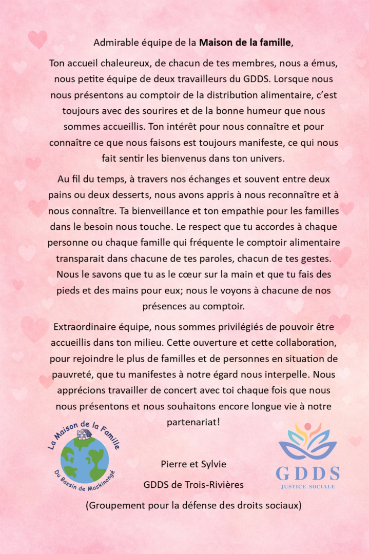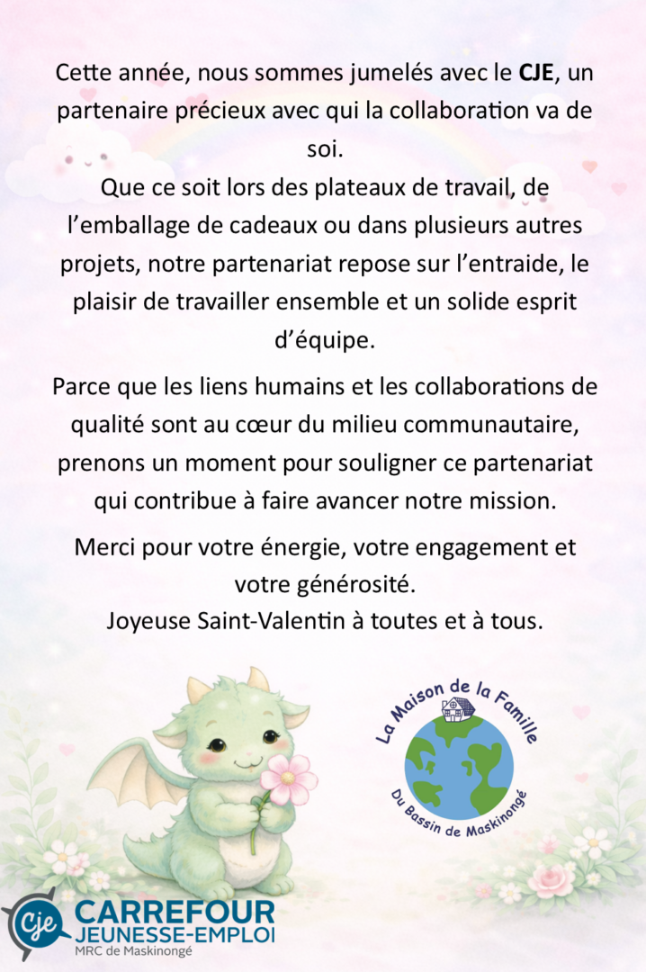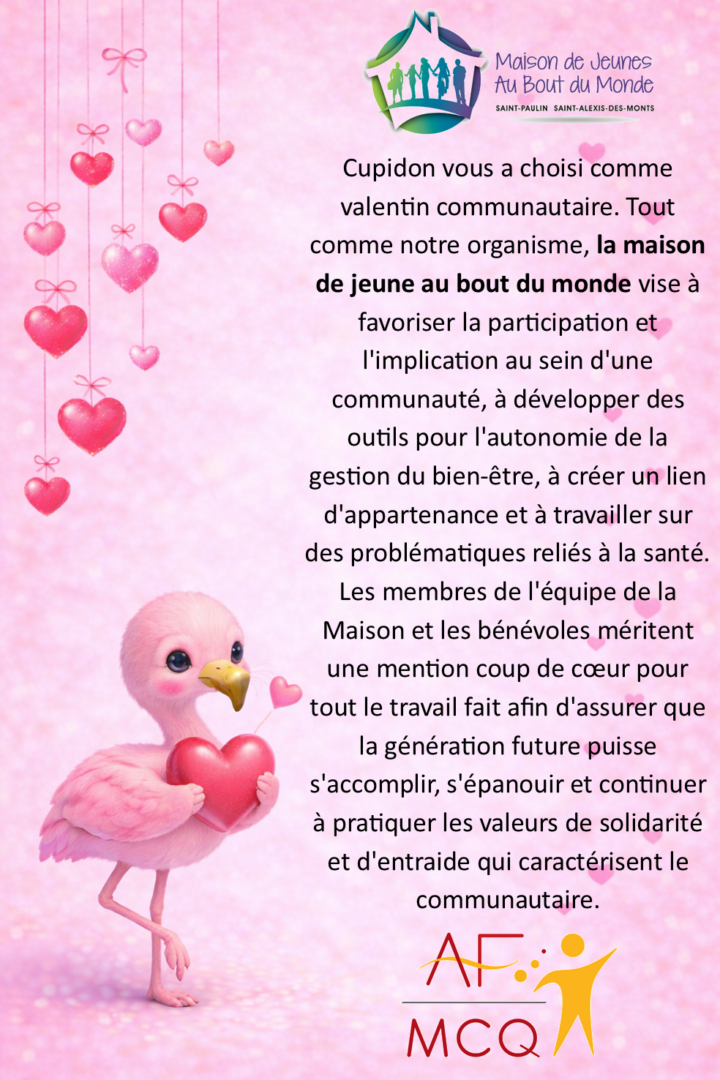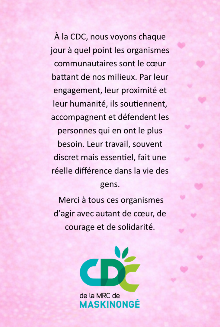 Voici donc l’édition 2026 du courrier du coeur des membres de la CDC de la MRC de Maskinongé.