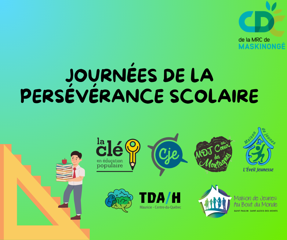 Plusieurs organismes communautaires font une différence pour nos jeunes afin de les aider à persévérer dans leur parcours scolaire. Nous n’avons qu’à penser aux maisons de jeunes du territoire (Maison de jeunes L’Éveil jeunesse, Maison des jeunes Au cœur des montagnes & Maison des jeunes Au bout du monde), qui offre un lieu de confiance aux jeunes afin de se développer comme individus.